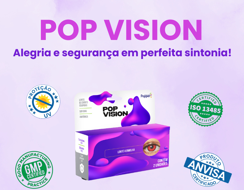 As lentes Pop Vision também seguem todas as regras de segurança e qualidade, estabelecidas na norma internacional ISO 13485. Este selo garante a segurança e eficácia de dispositivos médicos e equipamentos relacionados, abrangendo desde o projeto até a produção, instalação e serviços de pós-venda.