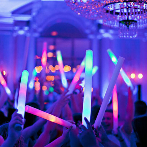 Bastão de espuma com iluminação de LED nas extremidades e centro.