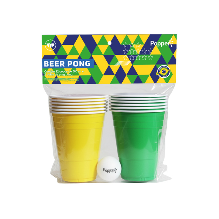 O Kit Beer Pong Linha Brasil da Popper vai garantir diversão do começo ao fim. *Cada kit contém: 6 copos verdes, 6 copos amarelos de 500ml e 2 bolinhas.