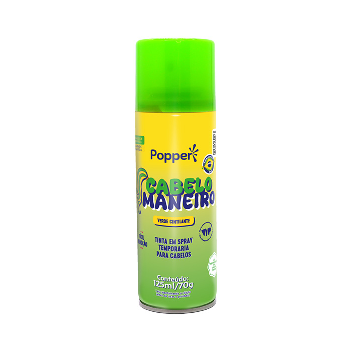 O Cabelo Maneiro Linha Brasil é uma tinta temporária para cabelos com efeito cintilante, fragrância suave e notificado pela Anvisa. *Contém 125 ml/70 g