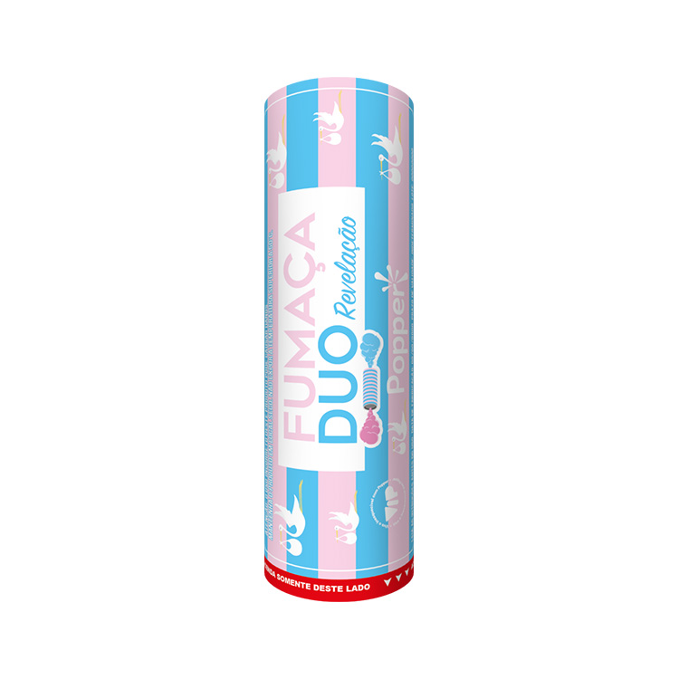 Experiência em dobro, emoção única! Nossa Fumaça Duo Revelação começa liberando simultaneamente azul de um lado e rosa do outro, criando um suspense mágico. Em instantes, apenas uma cor permanece no ar, revelanod de forma inesquecível se é menino ou menina.