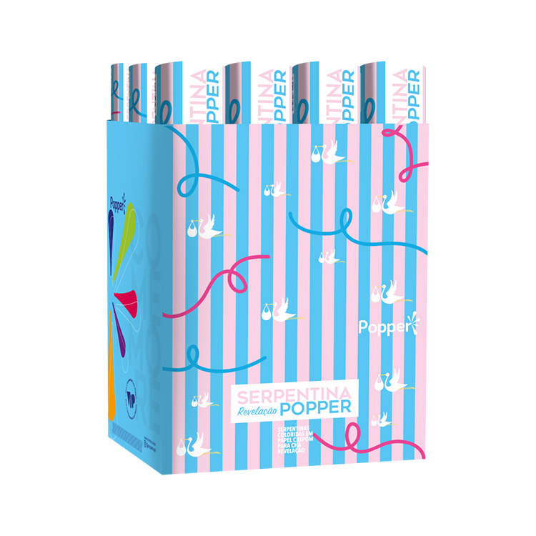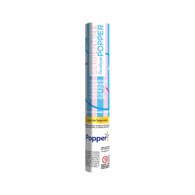 O Lança Serpentina Revelação Popper tem um efeito espetacular e diferente dos confetes comuns, a serpentina em papel crepom cria linhas fluidas no ar que preenchem o ambiente de forma espetacular, atingindo até 13 metros de altura.
