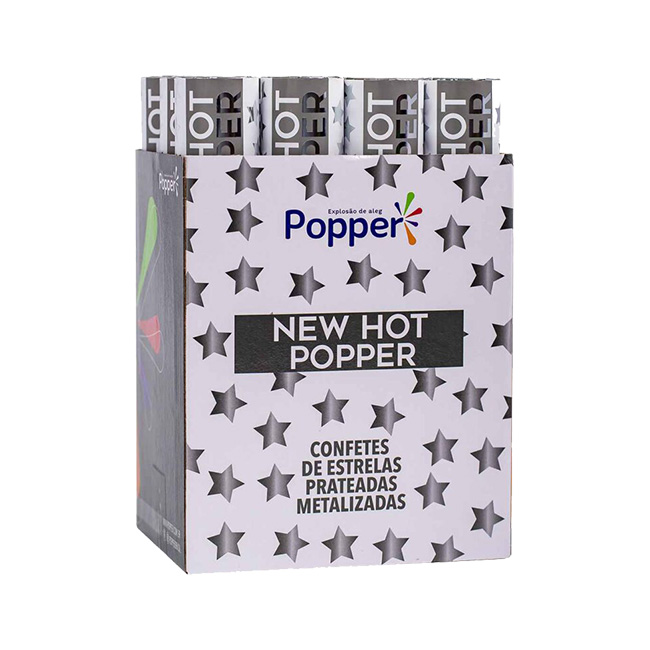 New Hot Popper Chuva de Estrelas Prateadas é alegre, chama atenção pelo brilho do confete metalizado prateado e pelo efeito charmoso.