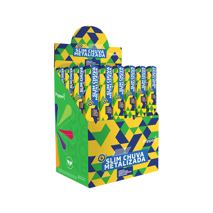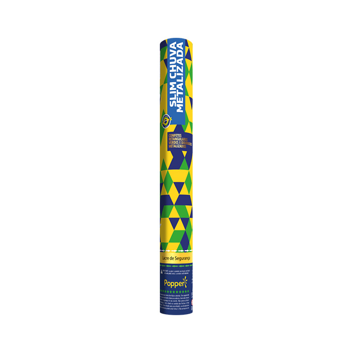 O Slim Chuva Metalizada Brasil vai transformar o gol em festa com confetes retangulares verdes e dourados metalizados.
