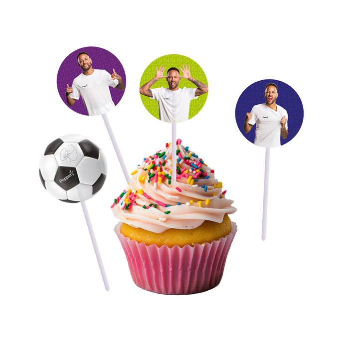 O topo de docinho Popper e Neymar Jr. vai transformar o ambiente em cenário de celebração. *Contém 8 unidades