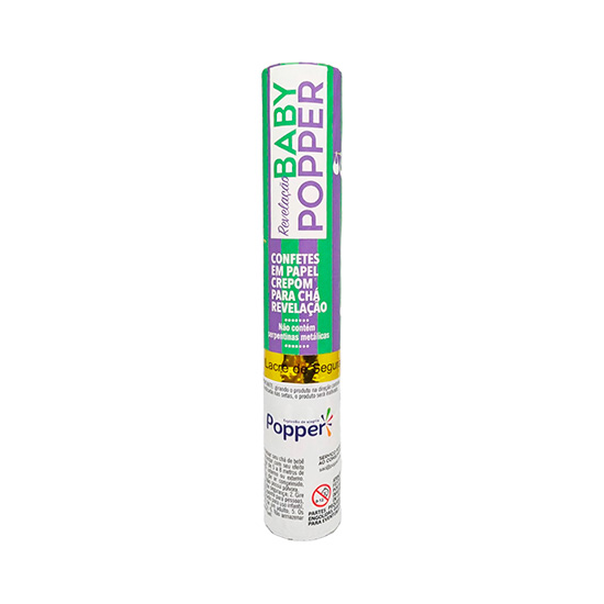 Quando acionado, o Baby Popper lança papéis em crepom, com alcance de até 8 metros de altura.