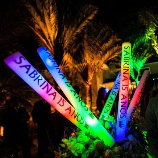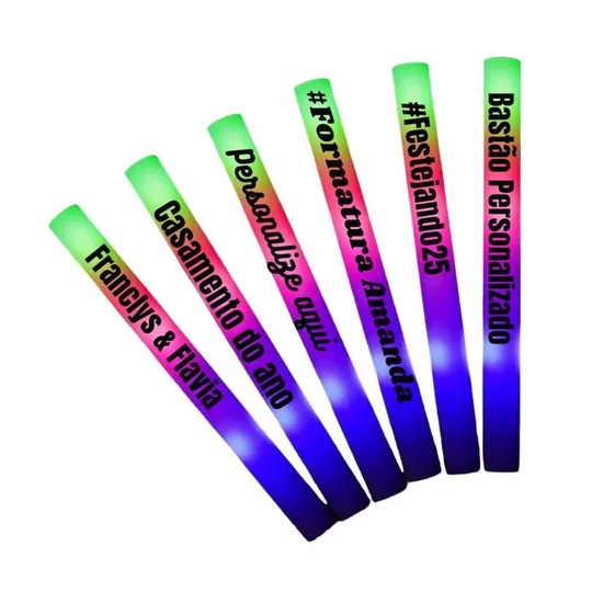 Bastão de espuma com iluminação de LED nas extremidades e centro.