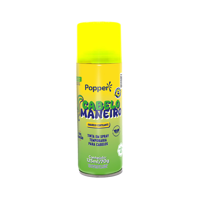O Cabelo Maneiro Linha Brasil é uma tinta temporária para cabelos com efeito cintilante, fragrância suave e notificado pela Anvisa. *Contém 125 ml/70 g