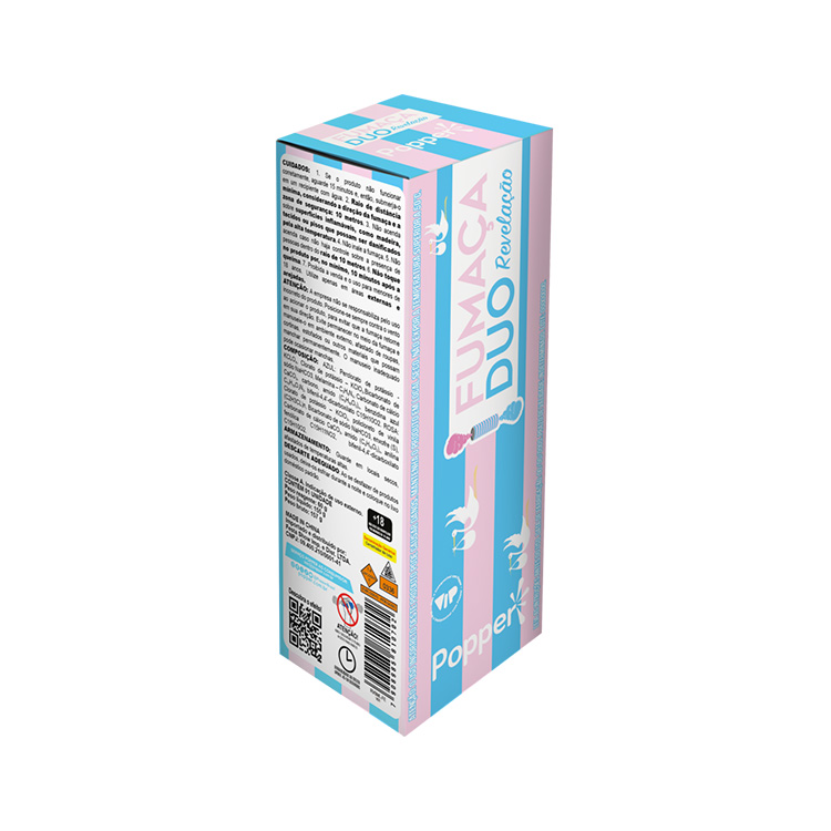 Experiência em dobro, emoção única! Nossa Fumaça Duo Revelação começa liberando simultaneamente azul de um lado e rosa do outro, criando um suspense mágico. Em instantes, apenas uma cor permanece no ar, revelanod de forma inesquecível se é menino ou menina.