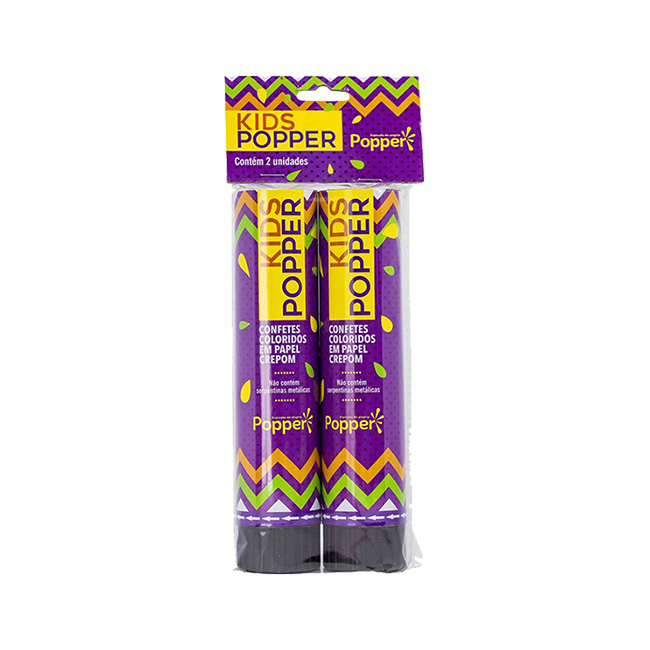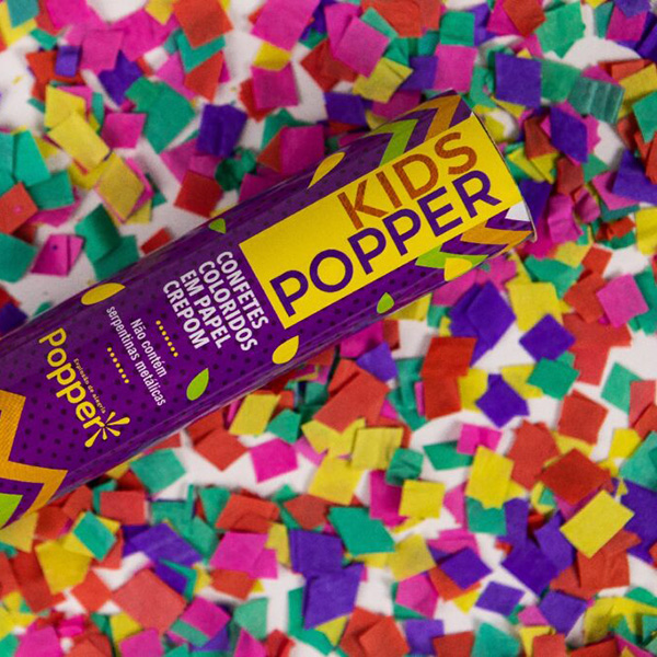 Quando acionado, lança uma chuva de confetes em papel crepom.
