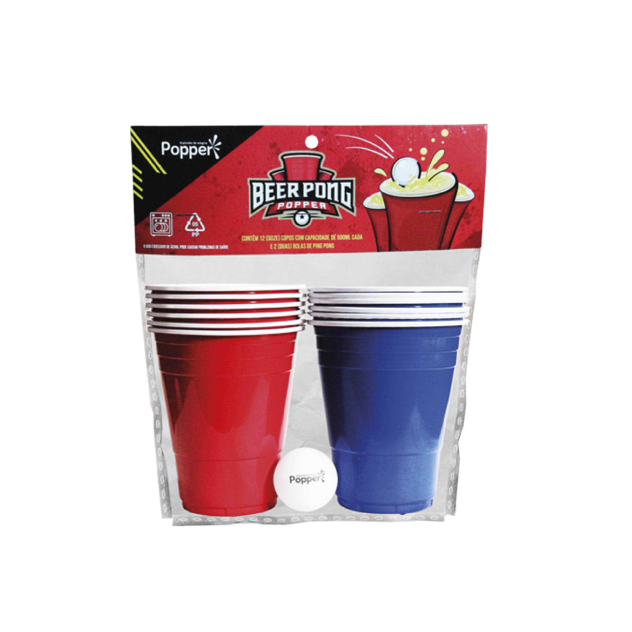 O Kit Beer Pong da Popper vai garantir diversão do começo ao fim. *Cada kit contém: 6 copos azuis, 6 copos vermelhos de 500ml e 2 bolinhas.
