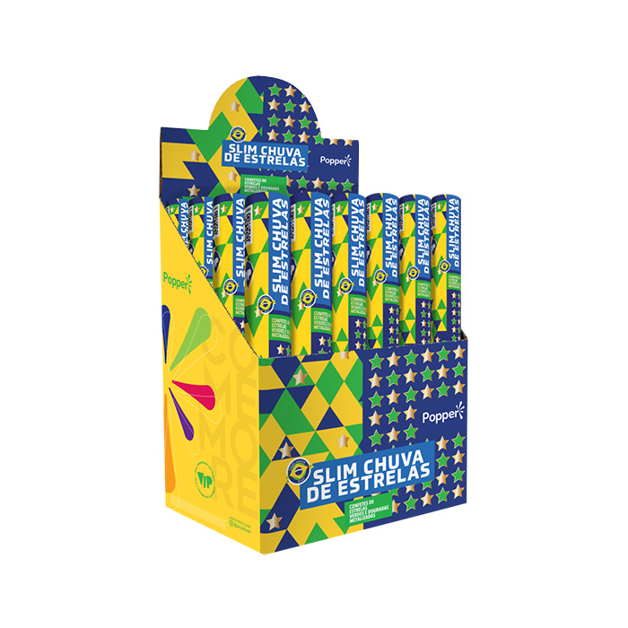 O Slim Chuva de Estrelas Brasil vai transformar o gol em festa com confetes de estrelas verdes e dourados metalizados.