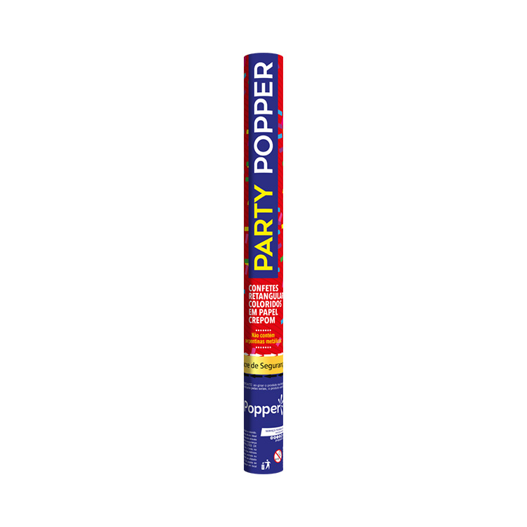 O lança confetes Slim Party Popper é feito com confetes retangulares, coloridos e papel crepom. Seu diâmetro “slim” é compacto e garante mais praticidade no manuseio, além de facilitar o armazenamento e a exposição do produto.