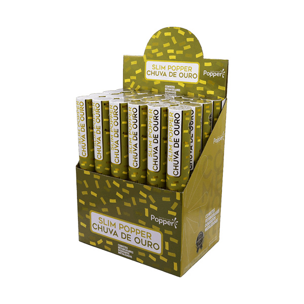 Os Slim Popper Chuva de Ouro é um lança confete de papel metalizado dourado que trazem mais brilho e elegância às suas celebrações!