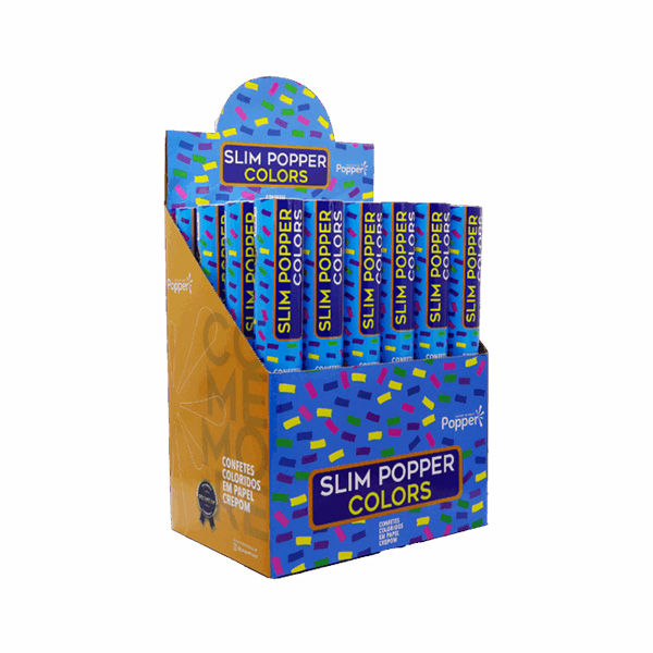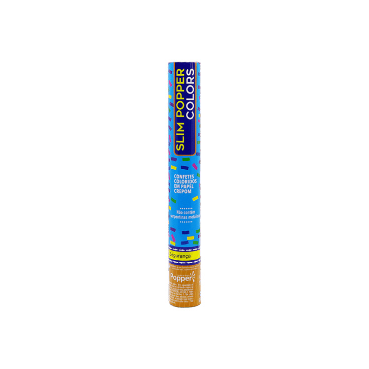 O Slim Popper Colors é um lança confete de papel crepom colorido que alcança até 8 metros de altura.